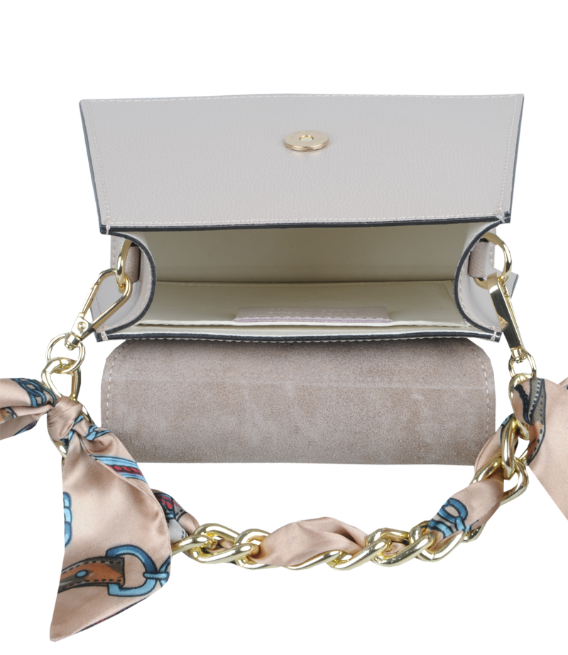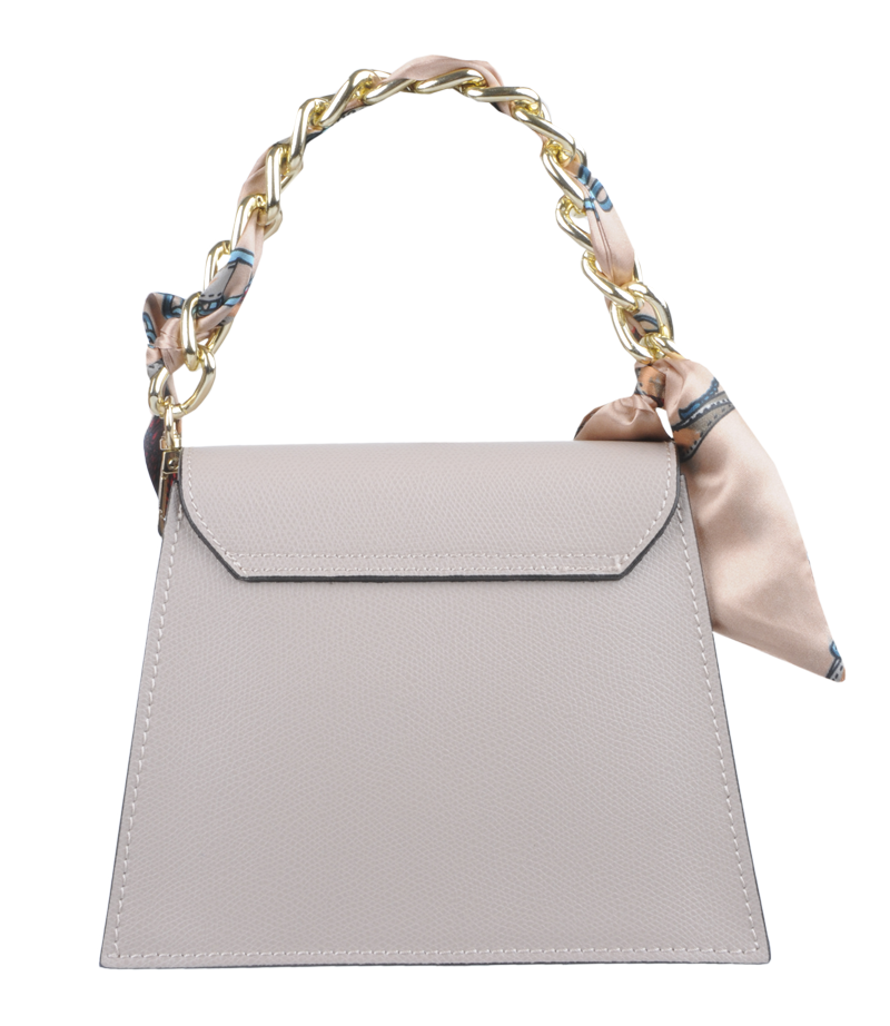 Malá šikovná kabelka se zajímavým tvarem. Kabelka je vyrobená z pravé kůže, která velice dobře drží svůj tvar. Je vhodná na nošení přes rameno nebo cross-body (křížem).