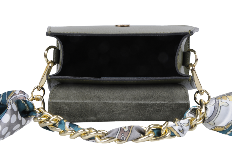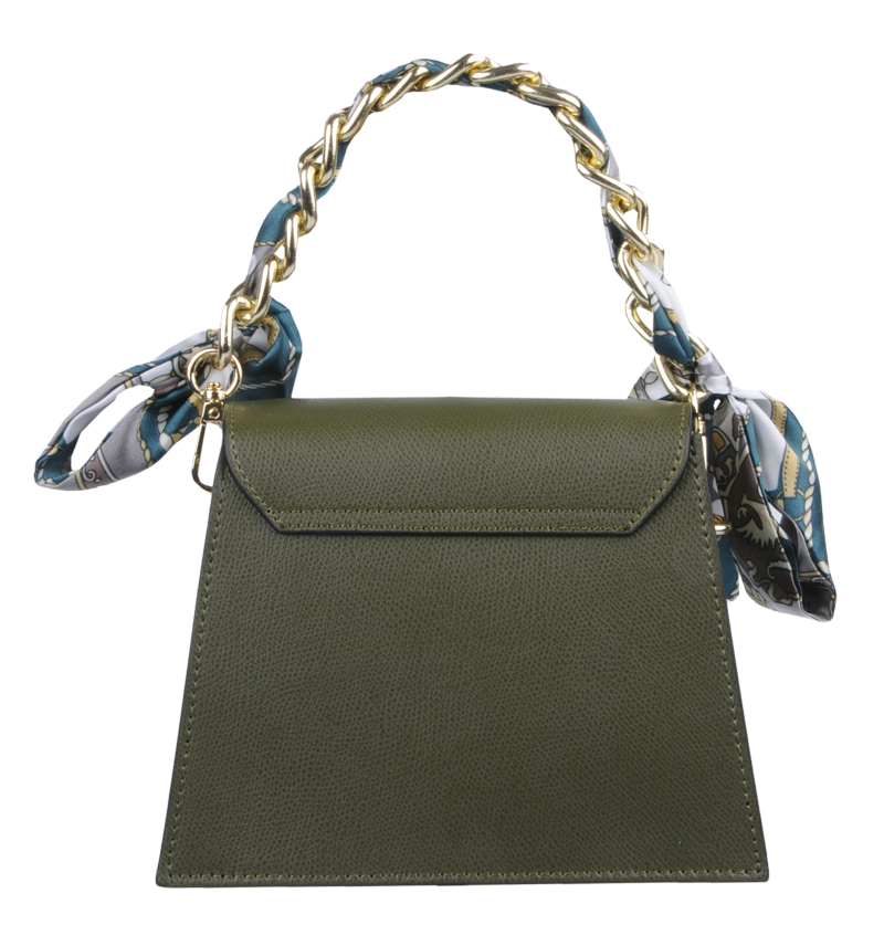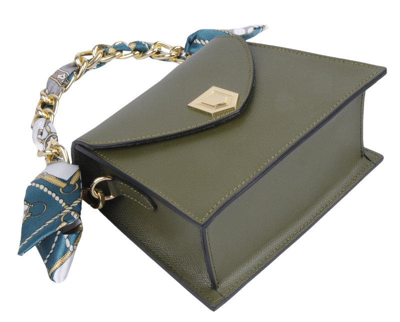 Malá šikovná kabelka se zajímavým tvarem. Kabelka je vyrobená z pravé kůže, která velice dobře drží svůj tvar. Je vhodná na nošení přes rameno nebo cross-body (křížem).