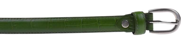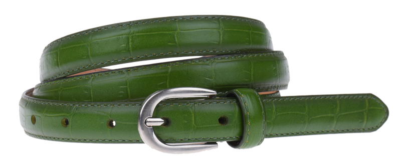 Dámský pásek je vyroben z pravé jemné hovězí kůže v krokodýlí textuře. Má decentní sponu stříbrné barvy. Šířka pásku je 2,4 cm. Prvotřídní kvalita od italského výrobce.