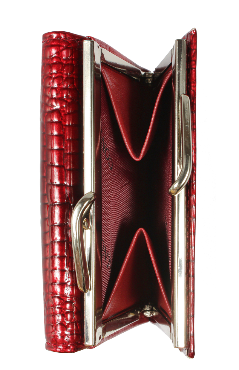 Elegantní a zároveň velice praktická peněženka moderního designu, z pravé lakované kůže červené barvy. Obsahuje dostatek kapsiček a přihrádek na karty i hotovost. Díky svým praktickým rozměrům je velmi dobře skladná a přitom prostorná, takže do ní vše pohodlně umístíte.
