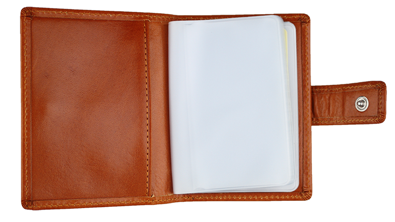Elegantní a zároveň velice praktická peněženka moderního designu v hnědé barvě. Tato kožená peněženka na karty (22 kapes) obdélníkového tvaru se zapíná na patentek.
