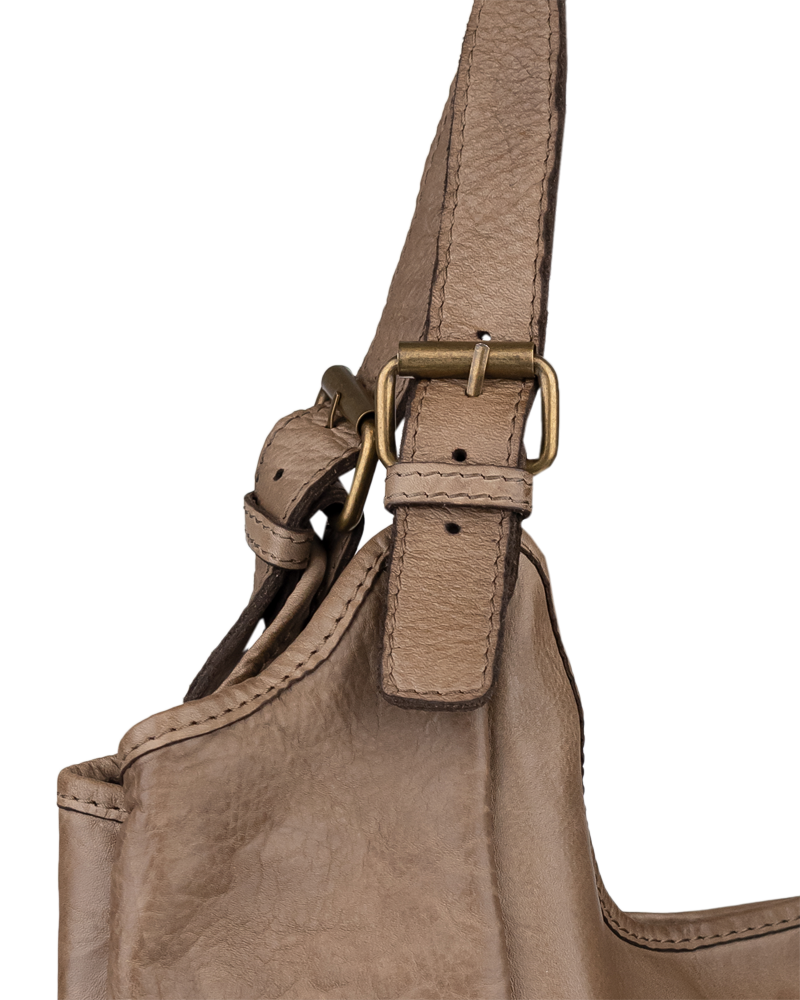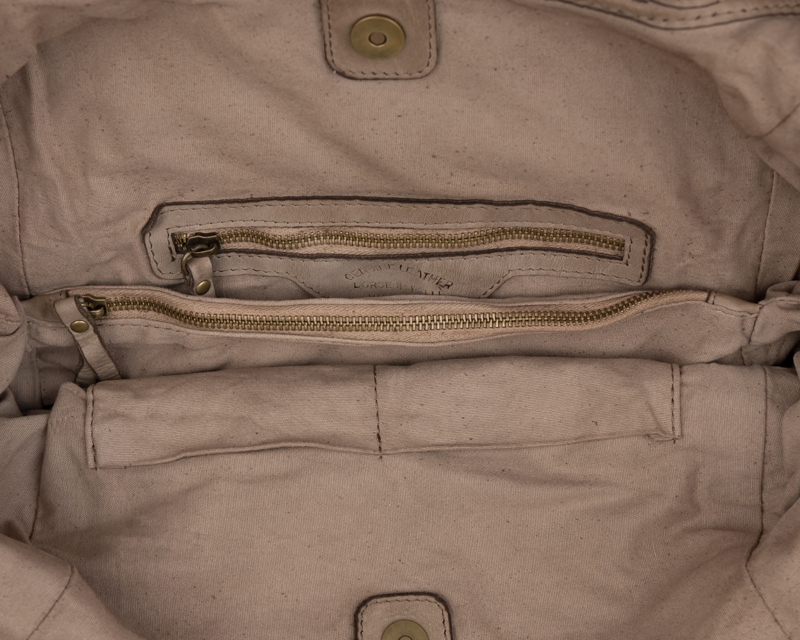 Praktická prostorná kabelka přes rameno ve hnědo-šedé barvě. Pohodlně se do ní vejdou dokumenty formátu A4. Tato kožená kabelka má nastavitelná ucha a je uzavíratelná na magnetický patentek. Uvnitř disponuje kapsou na zip, přepážkou fungující jako další kapsa na zip a také dvěma malými kapsami např. pro vaši peněženku a mobil.