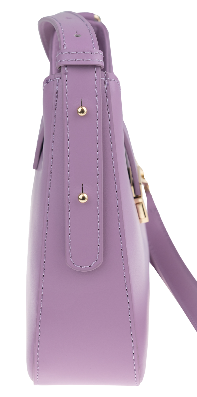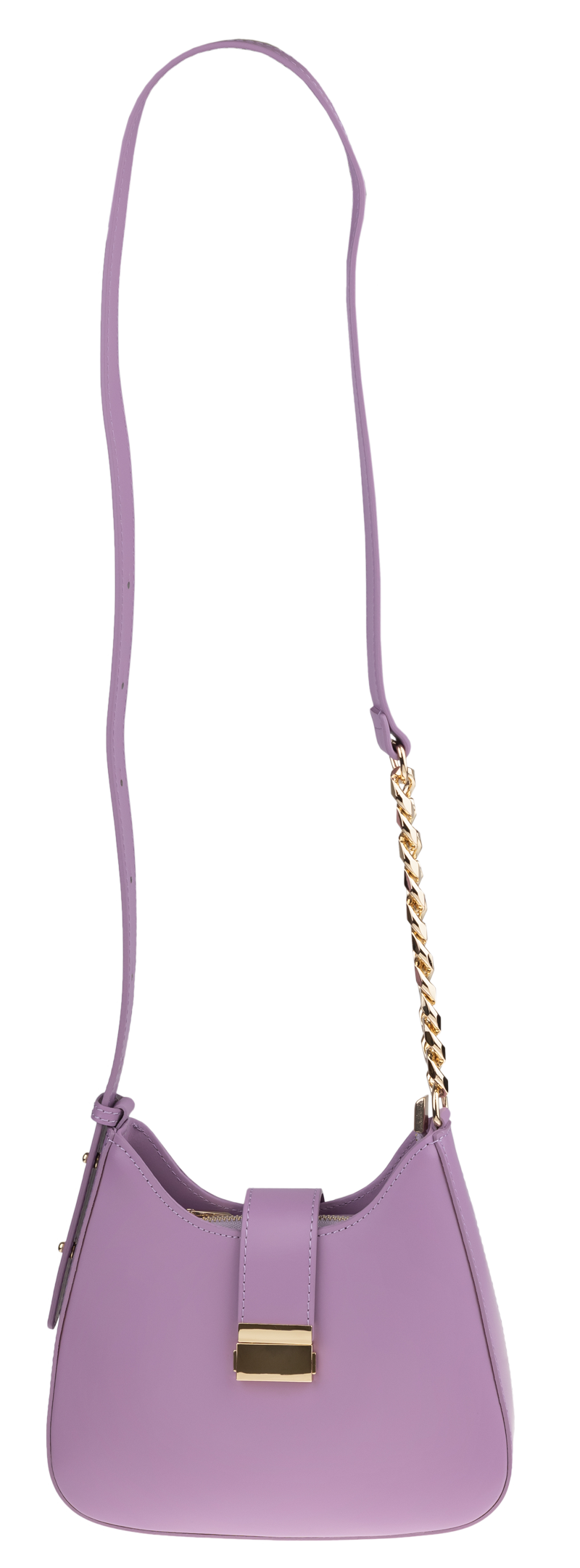 Krásná fialová kabelka z hladké kůže. Tato originální kabelka, která skvěle drží svůj tvar, určená k nošení přes rameno, je vhodným doplňkem pro pravidelné nošení. Kabelka se uzavírá na klopu a na zip.