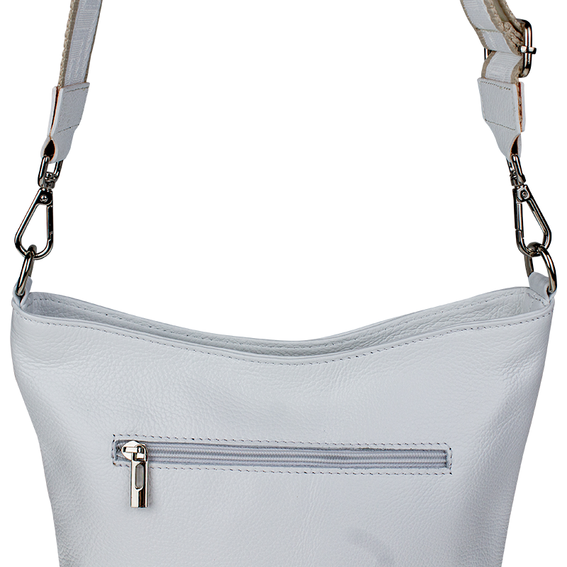 Klasická praktická kabelka s jednoduchým designem a stylovým přídavným popruhem. Nositelná přes rameno nebo crossbody. Kabelka je uzavíratelná na zip a je vyrobena z pravé poctivé kůže. Uvnitř kabelky najdeme přepážku uprostřed, která zároveň slouží jako kapsa na zip, a na bočních stěnách pak kapsu na zip a na druhé straně další malou kapsu.