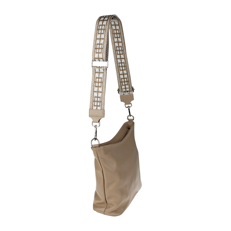 Klasická praktická kabelka s jednoduchým designem a stylovým přídavným popruhem. Nositelná přes rameno nebo crossbody. Kabelka je uzavíratelná na zip a je vyrobena z pravé poctivé kůže. Uvnitř kabelky najdeme přepážku uprostřed, která zároveň slouží jako kapsa na zip, a na bočních stěnách pak kapsu na zip a na druhé straně další malou kapsu.