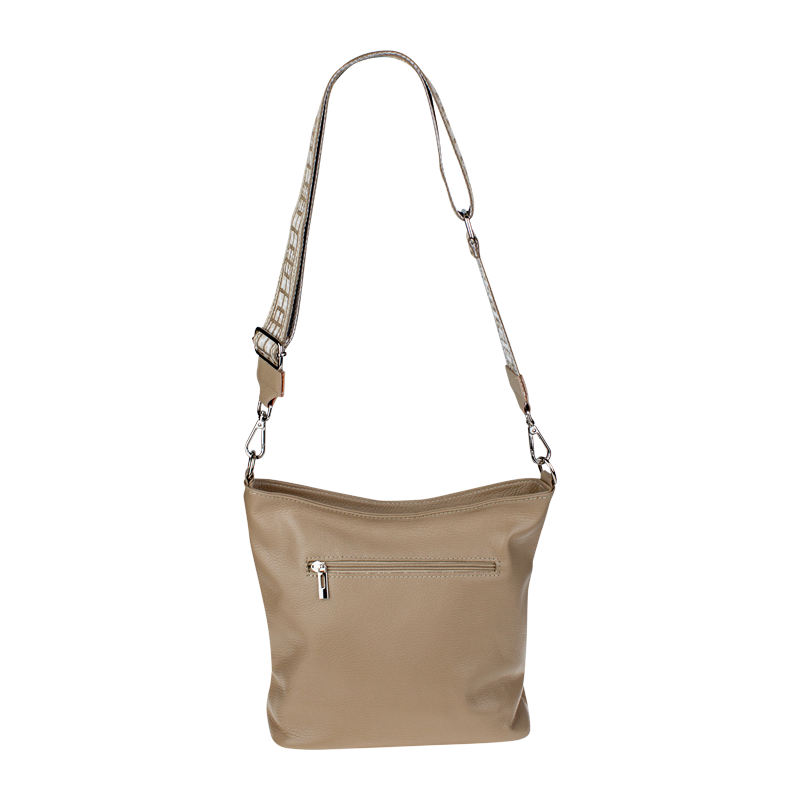 Klasická praktická kabelka s jednoduchým designem a stylovým přídavným popruhem. Nositelná přes rameno nebo crossbody. Kabelka je uzavíratelná na zip a je vyrobena z pravé poctivé kůže. Uvnitř kabelky najdeme přepážku uprostřed, která zároveň slouží jako kapsa na zip, a na bočních stěnách pak kapsu na zip a na druhé straně další malou kapsu.
