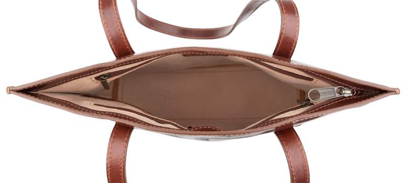 Pohodlné kožené rukojeti jsou dostatečně dlouhé pro nošení na rameni, což zajišťuje maximální komfort i při plném zatížení. Vnitřní uspořádání s kapsami (pokud jsou) vám pomůže udržet si pořádek.