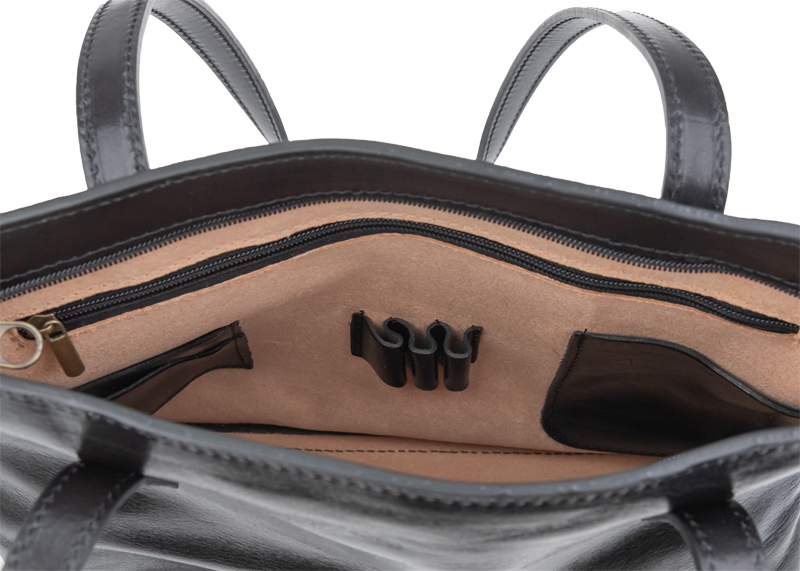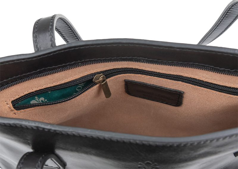 Pohodlné kožené rukojeti jsou dostatečně dlouhé pro nošení na rameni, což zajišťuje maximální komfort i při plném zatížení. Vnitřní uspořádání s kapsami (pokud jsou) vám pomůže udržet si pořádek.