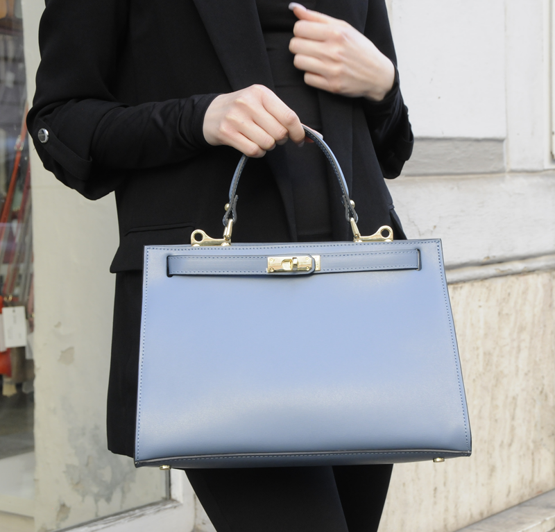 Krásná kabelka z pevné kůže v cafe barvě. Kabelku lze nosit v ruce nebo přes rameno. Max. délka přídavného pásku je 115 cm. Kabelka je vybavena důmyslným a elegantním zapínáním. Uvnitř kabelky nalezneme kapsu na mobil či klíče.
