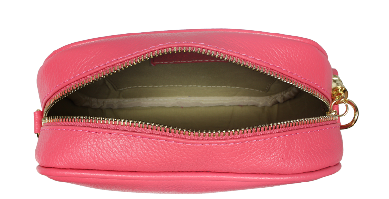 Malá praktická kožená kabelka, kterou lze nosit přes rameno nebo cross-body (křížem). Kabelka se uzavírá pomocí zipu a uvnitř najdeme přihrádku pro vše potřebné.