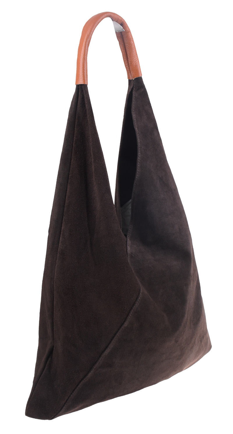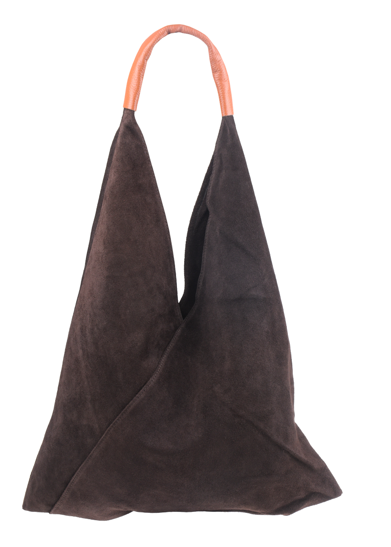 Velmi krásná kabelka trojúhelníkového tvaru z broušené kůže, patří k našim nejoblíbenějším kabelkám. Kabelka má jednoduchý design bez zbytečných ozdob, je elegantní a dostatečně prostorná. Kabelka uvnitř disponuje dvěma pásky, které můžete zavázat a chránit tak Vaše cennosti.