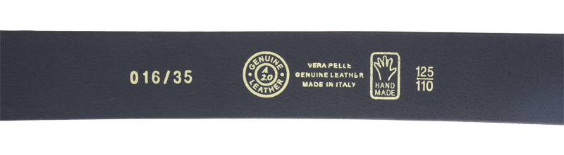 Pásek v modré barvě je vyroben z pravé jemné hovězí kůže. Má decentní sponu stříbrné barvy. Šířka pásku je 3,3 cm. Prvotřídní kvalita od italského výrobce.