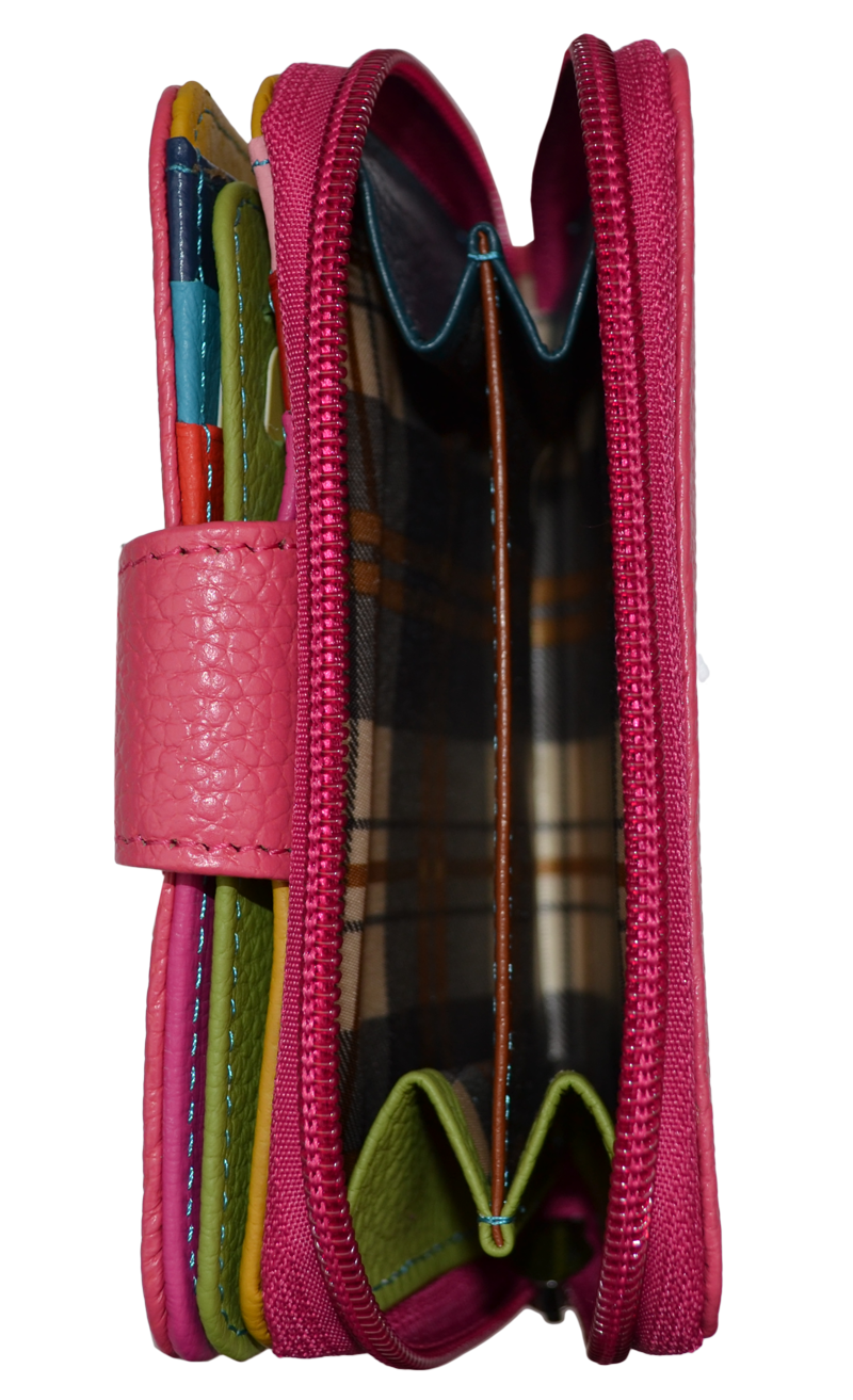 Poutavý vnitřní design: Zatímco vnější strana je elegantně jednobarevná, vnitřek překvapí barevnými přihrádkami (oranžová, žlutá, červená, zelená), které dodávají peněžence osobitost a usnadňují orientaci.