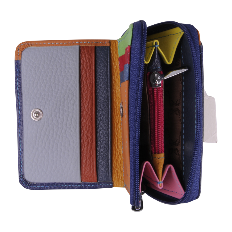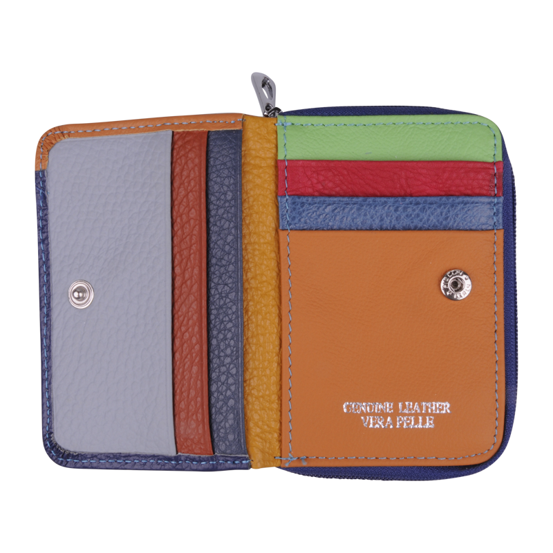 Poutavý vnitřní design: Zatímco vnější strana je elegantně jednobarevná, vnitřek překvapí barevnými přihrádkami (oranžová, žlutá, červená, zelená), které dodávají peněžence osobitost a usnadňují orientaci.