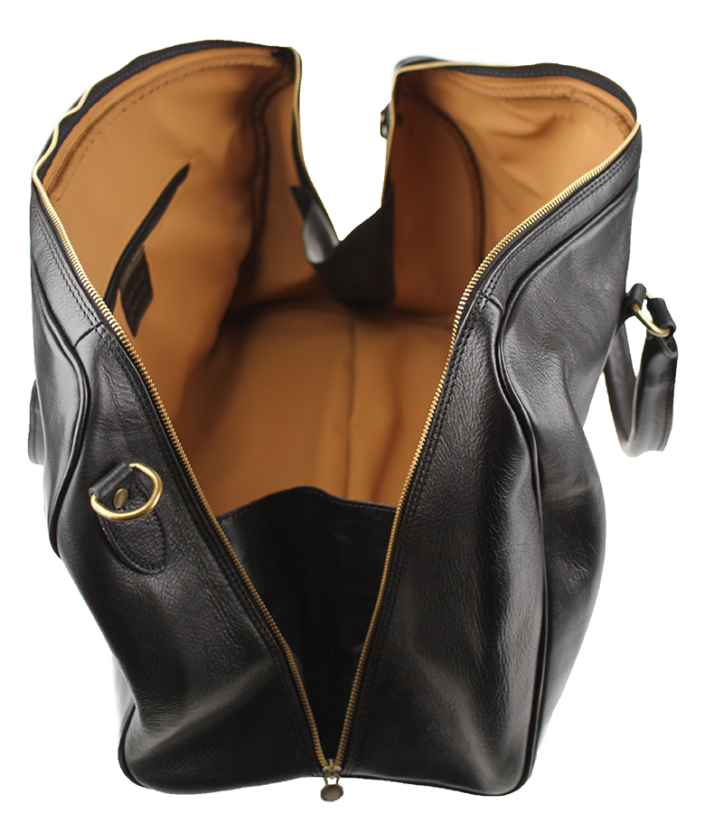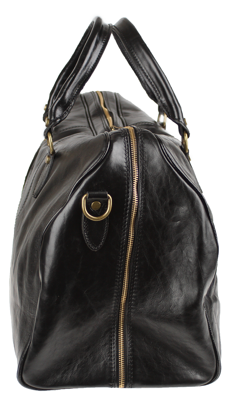 Luxusní kožená cestovní taška v černé barvě. Taška je vyrobena z hladké kvalitní Italské kůže. Součástí tašky je přídavný popruh o délce 107 cm. Taška se uzavírá kovovým zipem. Cestujte stylově s koženou taškou!