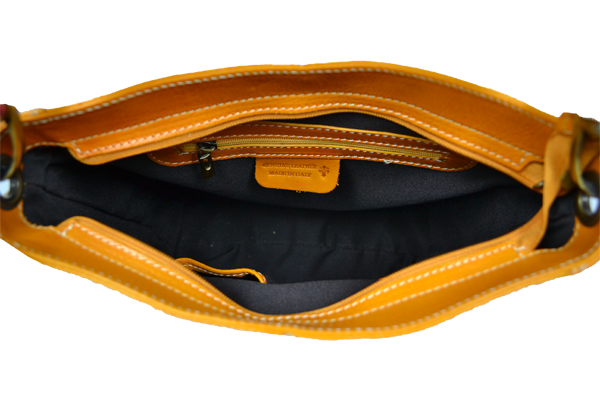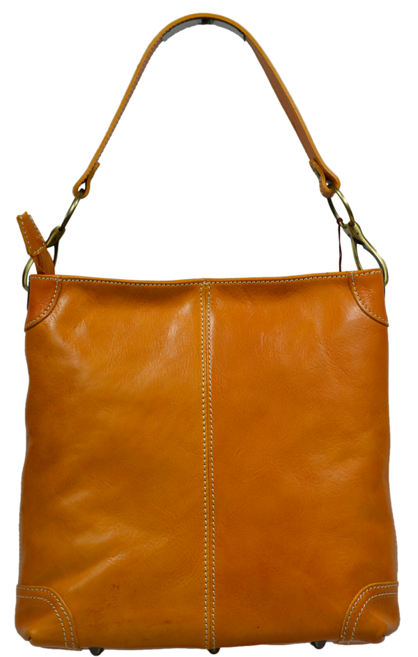 Praktická, ale zároveň elegantní kabelka s jednoduchým designem ve žluto hnědé barvě. Pohodlně se do ní vejdou dokumenty formátu A4. Nositelná přes rameno. Je vyrobena z leštěné hladké kůže.