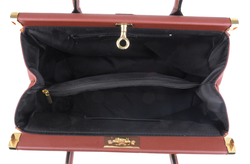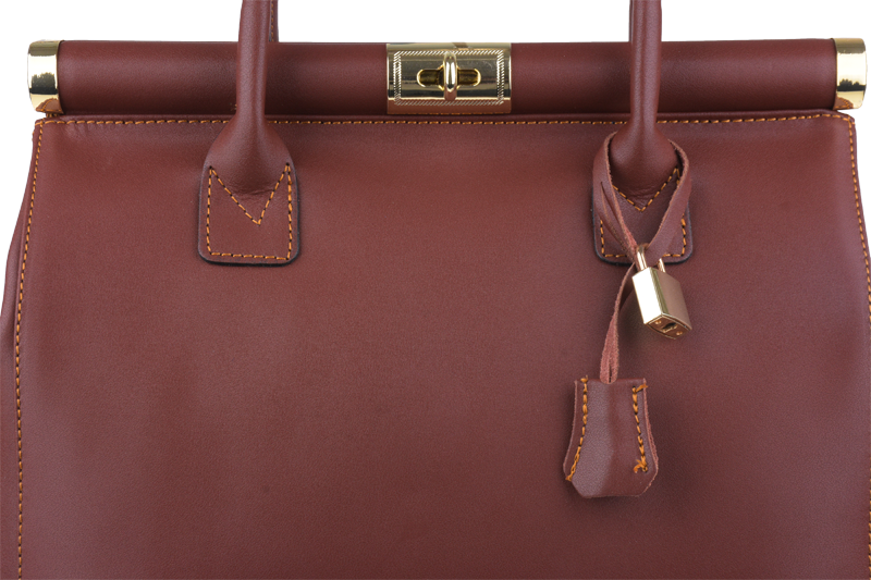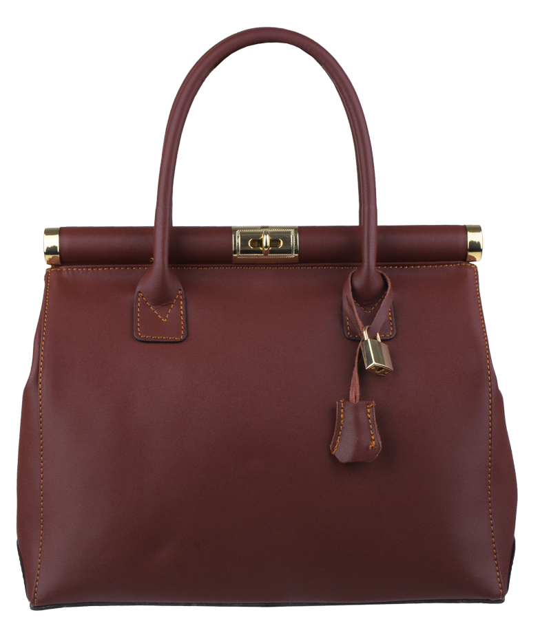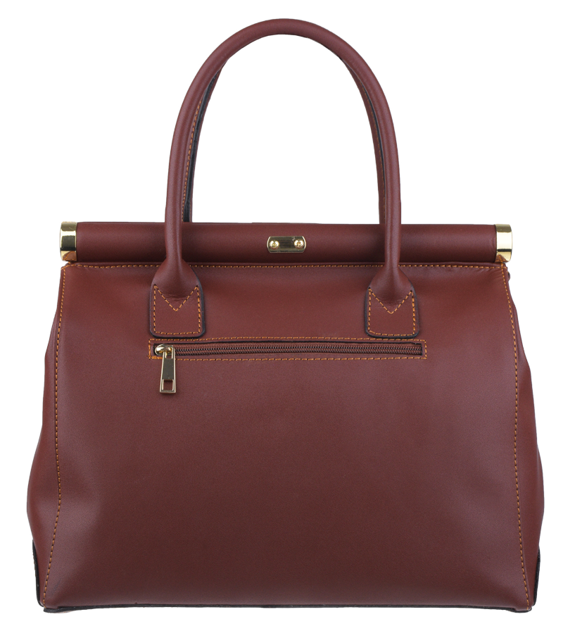 Tato kabelka zvaná též "doktorská" se může pochlubit kromě svého klasického designu tím, že dobře drží tvar. Tato kožená kabelka je nositelná do ruky a uzavíratelná na patentek, který pak v případě potřeby můžete uzamknout přiloženým zámečkem. Jejím materiálem je hladká pravá kůže v hnědé barvě. Uvnitř najdete kapsu na zip a 2 malé kapsy vhodné např. pro Váš mobil a peněženku a uprostřed je látková přepážka také s kapsou na zip. Kabelka má navíc k tomu všemu kapsu na zip na vnější zadní straně. Hloubka jejího dna je 15 cm. Další barevné varianty naleznete zde.