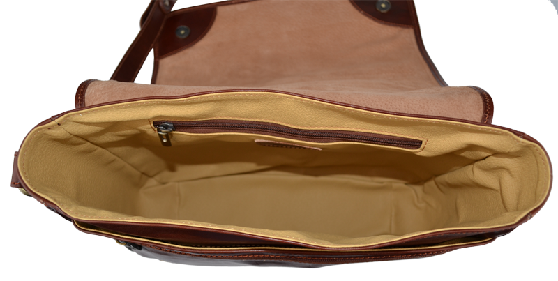 Kvalitní kožená aktovka vyrobená z pravé kůže. Aktovka velice dobře drží svůj tvar. Je vhodná pro nošení přes rameno nebo cross-body (křížem), popruh aktovky lze nastavit do 5-ti různých délek. Aktovka se uzavírá pomocí dvou patentek. Vnitřek aktovky je rozdělen na dvě části. Uvnitř aktovky také nalezneme kapsu pro mobil nebo jiné drobné předměty. Do aktovky se bez problému vejdou dokumenty formátu A4. Max. délka popruhu je 120 cm.