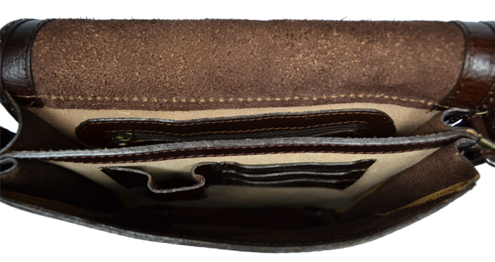 Praktická kožená unisex taška přes rameno. Vnitřek kabelky je rozdělen na dvě přihrádky a kapsu na zip. Kabelka se uzavírá klopou pomocí dvou magnetických patentek.
