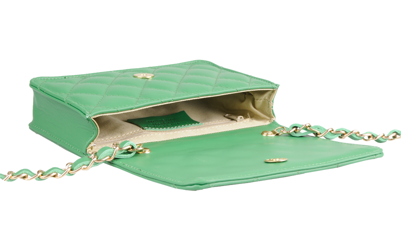 Kabelka je doplněna stylovým řetězovým popruhem ve zlatém provedení, propleteným kůží, který je ikonickým prvkem a umožňuje pohodlné nošení přes rameno nebo křížem přes tělo. Díky tomu budete mít volné ruce, což je ideální pro večerní akce, procházky městem nebo nákupy.