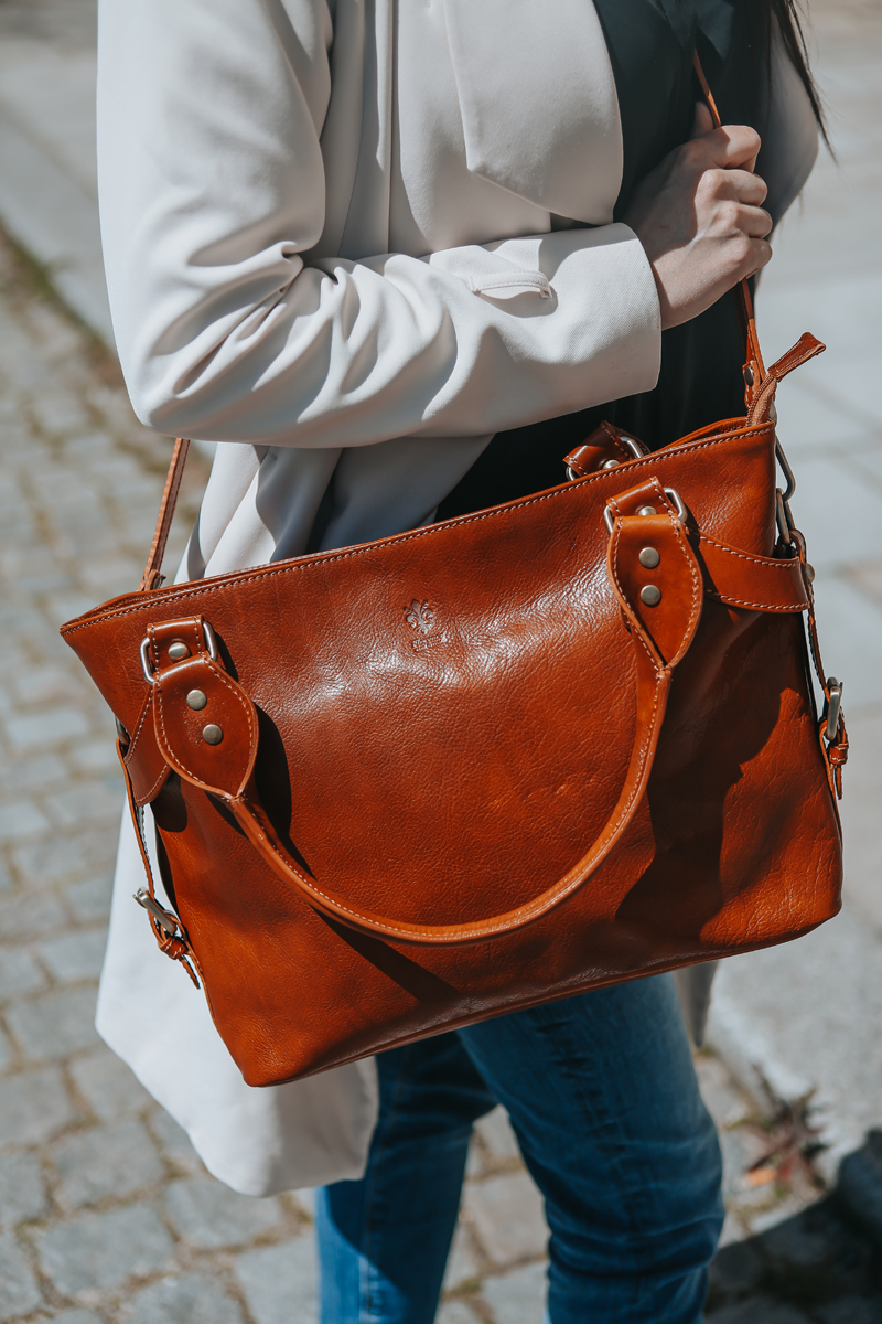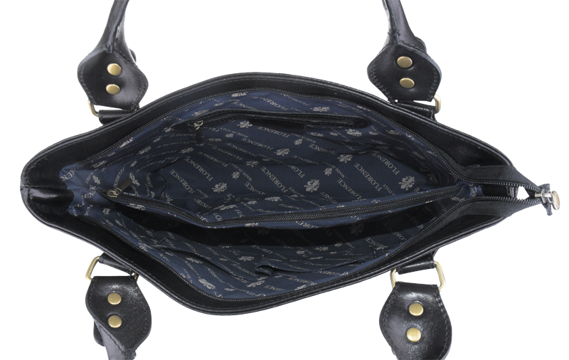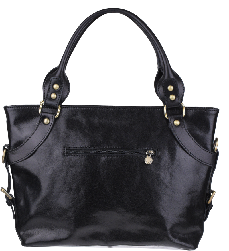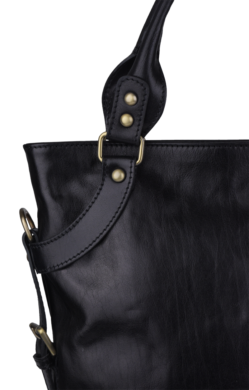 Praktická a prostorná kožená kabelka v černé barvě. Jednoduché provedení a velký prostor dělá tuto kabelku neobyčejně praktickou pro denní nošení. Vnitřek kabelky je vybaven kapsou na zip a dvěma malými přihrádkami.