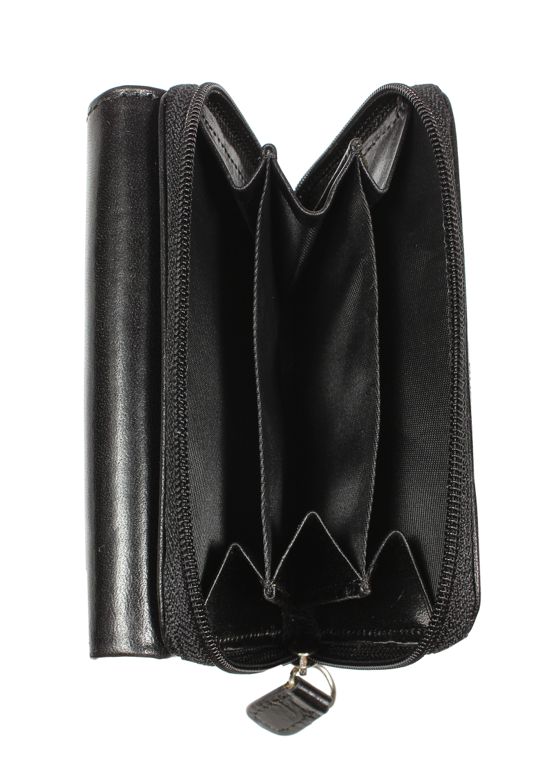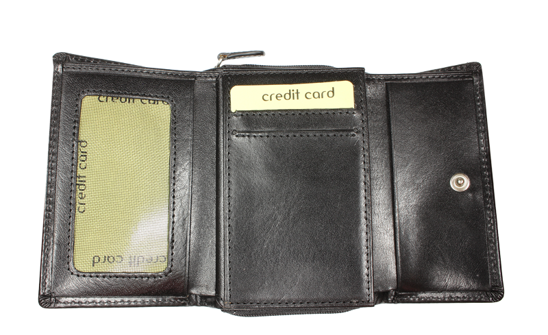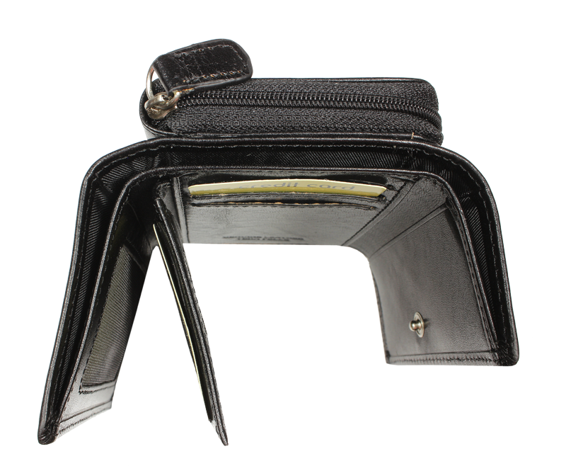 Nádherná dámská kožená peněženka v černé barvě. Obsahuje dostatek kapsiček a přihrádek na karty i hotovost. Díky svým praktickým rozměrům je velmi dobře skladná a přitom prostorná, takže do ní vše pohodlně umístíte.