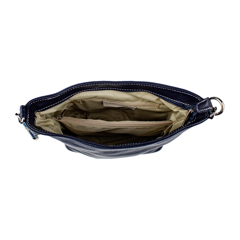 Klasická praktická kabelka s jednoduchým designem a stylovým přídavným popruhem. Nositelná přes rameno nebo crossbody. Kabelka je uzavíratelná na zip a je vyrobena z pravé poctivé kůže. Uvnitř kabelky najdeme přepážku uprostřed, která zároveň slouží jako kapsa na zip, a na bočních stěnách pak kapsu na zip a na druhé straně další malou kapsu.