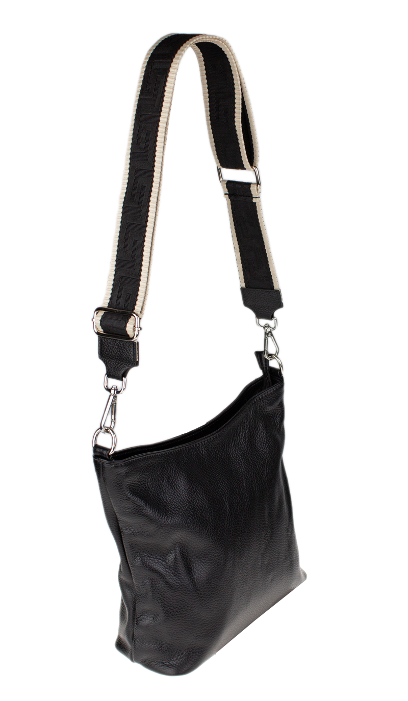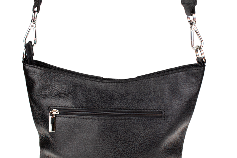 Klasická praktická kabelka s jednoduchým designem a stylovým přídavným popruhem. Nositelná přes rameno nebo crossbody. Kabelka je uzavíratelná na zip a je vyrobena z pravé poctivé kůže. Uvnitř kabelky najdeme přepážku uprostřed, která zároveň slouží jako kapsa na zip, a na bočních stěnách pak kapsu na zip a na druhé straně další malou kapsu.