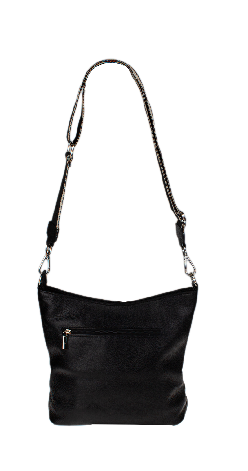 Klasická praktická kabelka s jednoduchým designem a stylovým přídavným popruhem. Nositelná přes rameno nebo crossbody. Kabelka je uzavíratelná na zip a je vyrobena z pravé poctivé kůže. Uvnitř kabelky najdeme přepážku uprostřed, která zároveň slouží jako kapsa na zip, a na bočních stěnách pak kapsu na zip a na druhé straně další malou kapsu.