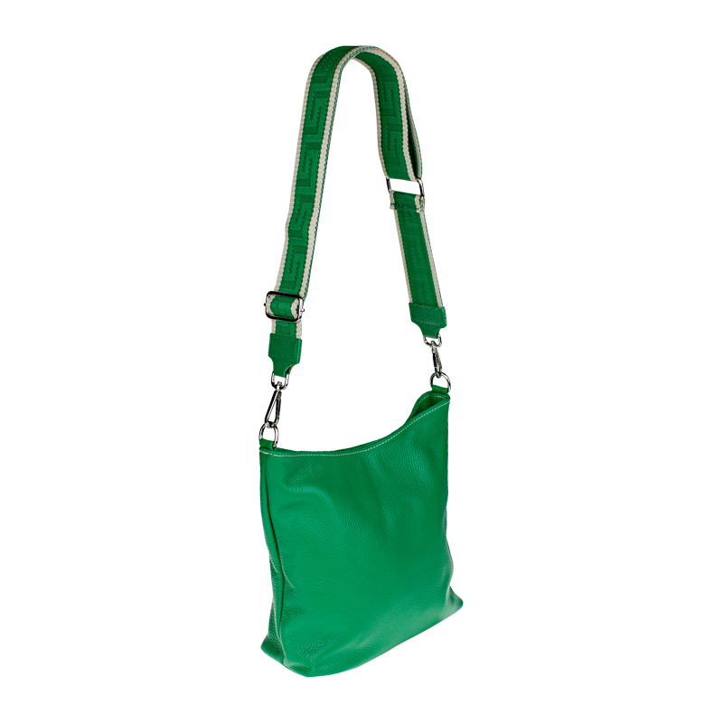 Klasická praktická kabelka s jednoduchým designem a stylovým přídavným popruhem. Nositelná přes rameno nebo crossbody. Kabelka je uzavíratelná na zip a je vyrobena z pravé poctivé kůže. Uvnitř kabelky najdeme přepážku uprostřed, která zároveň slouží jako kapsa na zip, a na bočních stěnách pak kapsu na zip a na druhé straně další malou kapsu.