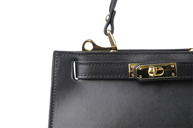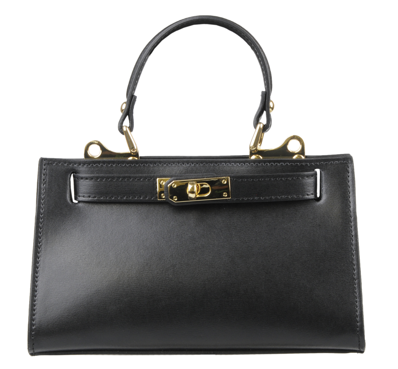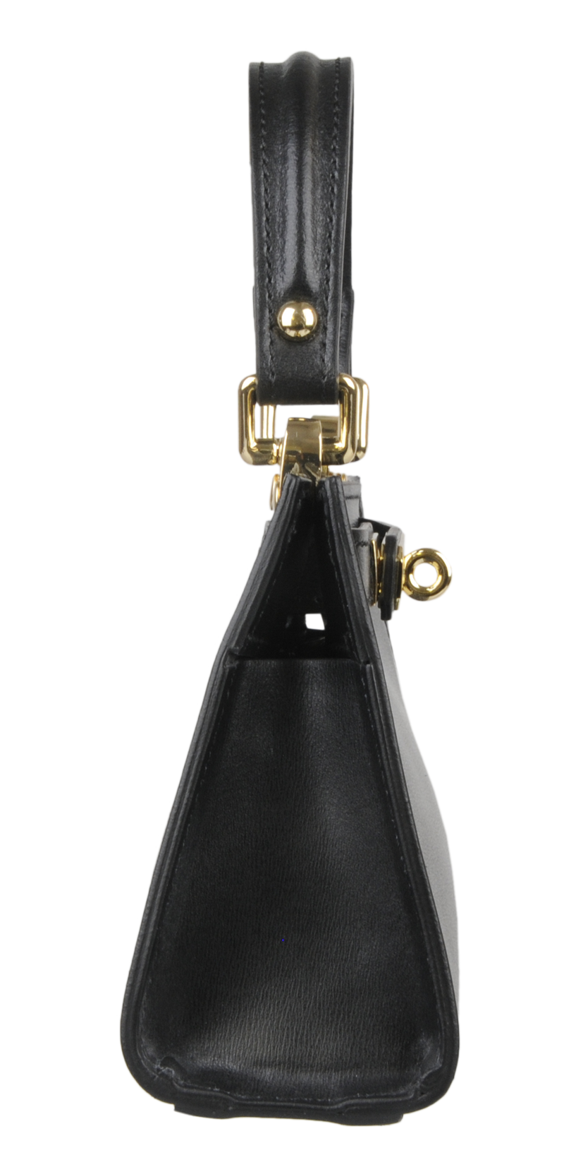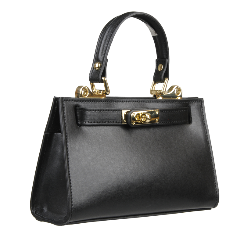 Malá kabelka z pevné kůže v černé barvě. Kabelku lze nosit v ruce nebo přes rameno. Max. délka přídavného pásku je 115 cm. Kabelka je vybavena důmyslným a elegantním zapínáním. Uvnitř kabelky nalezneme kapsu na mobil či klíče.