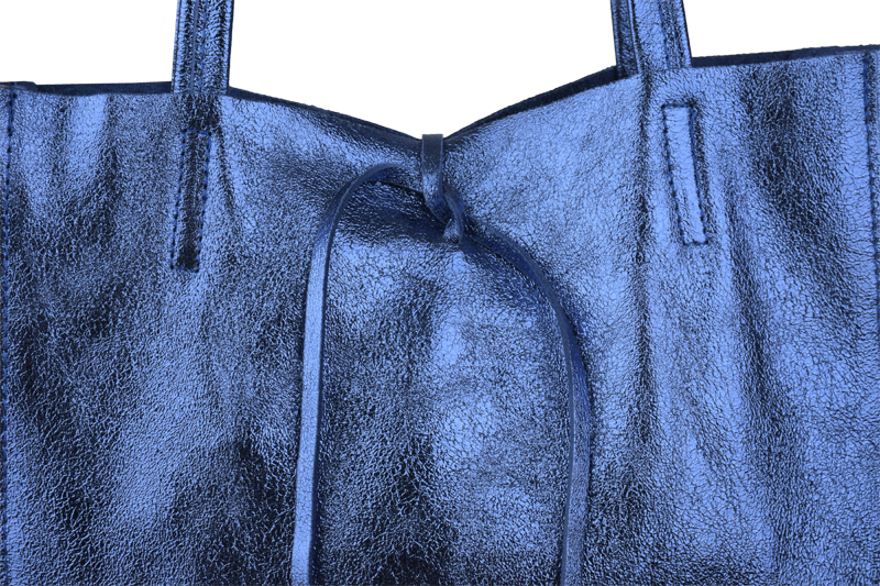 Horní část kabelky lze stáhnout pomocí kožené šňůrky, což dodává šarm a zároveň částečně zajišťuje obsah.