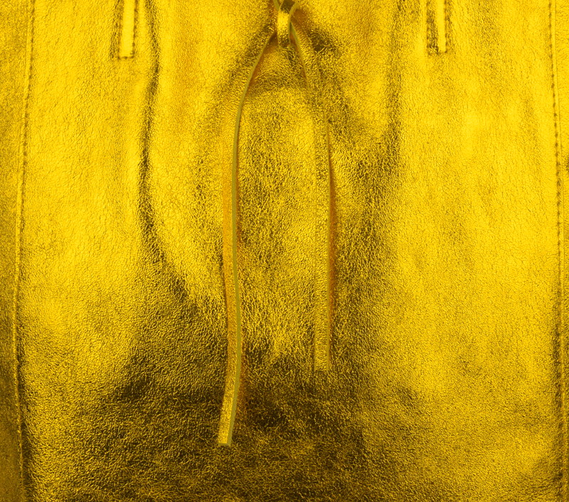 Horní část kabelky lze stáhnout pomocí kožené šňůrky, což dodává šarm a zároveň částečně zajišťuje obsah.