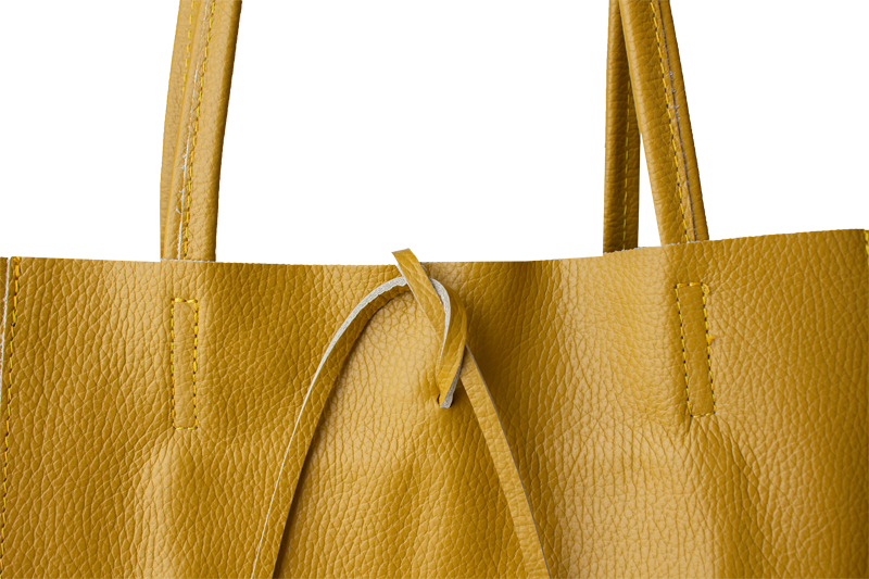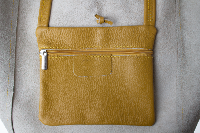 Horní část kabelky lze stáhnout pomocí kožené šňůrky, což dodává šarm a zároveň částečně zajišťuje obsah.