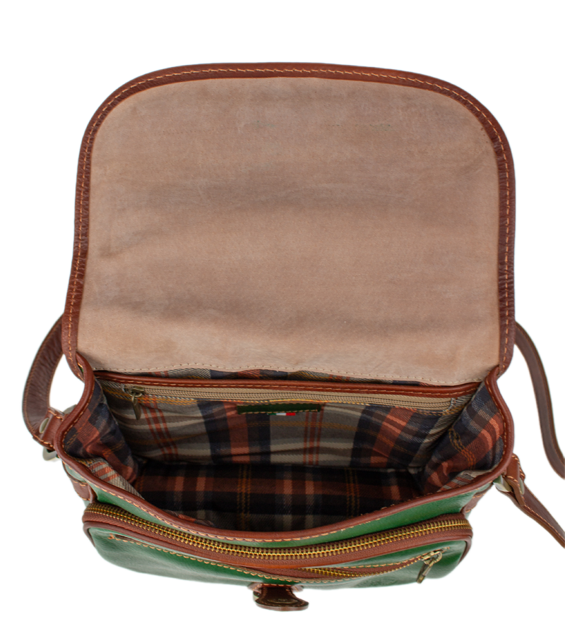 Představujeme vám nadčasovou koženou kabelku s elegantním a kompaktním designem, která je vyrobena ručně v Itálii. Je ideální volbou pro ženu, která oceňuje tradiční řemeslnou práci, prvotřídní materiály a styl, který nikdy nevyjde z módy. Pravá italská kůže: Kabelka je zhotovena z kvalitní hovězí kůže v zeleném odstínu, který časem získá jedinečnou patinu. Klasický design: Elegantní tvar brašny s oblým víkem a zapínáním na dekorativní kožený pásek s mosaznou přezkou a patentem. Tato kabelka je dostatečně prostorná pro všechny vaše každodenní nezbytnosti, jako je peněženka, telefon, klíče a menší kosmetika.