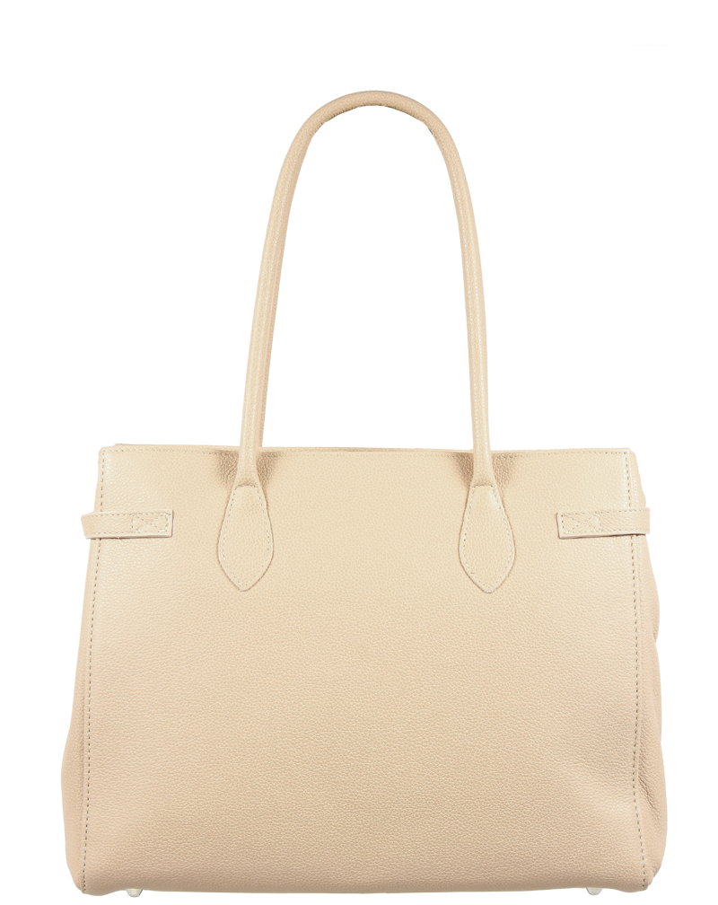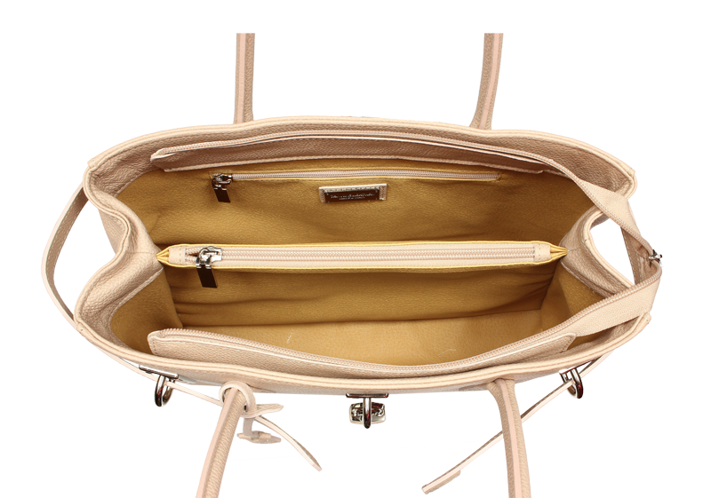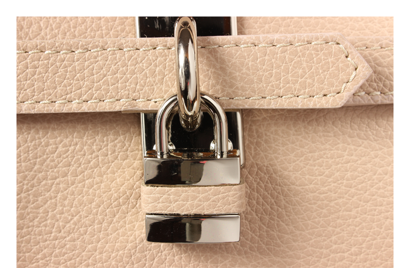 Velká staro-růžová kabelka nositelná přes rameno propracovaného designu s dekoračním zámečkem. Kožená kabelka je uzavíratelná na zip. Vyrobena z pravé poctivé kůže. Uvnitř disponuje kapsou na zip a 2 malými kapsami vhodnými např. pro Váš mobil a peněženku. Hloubka jejího dna činí 10,5 cm.