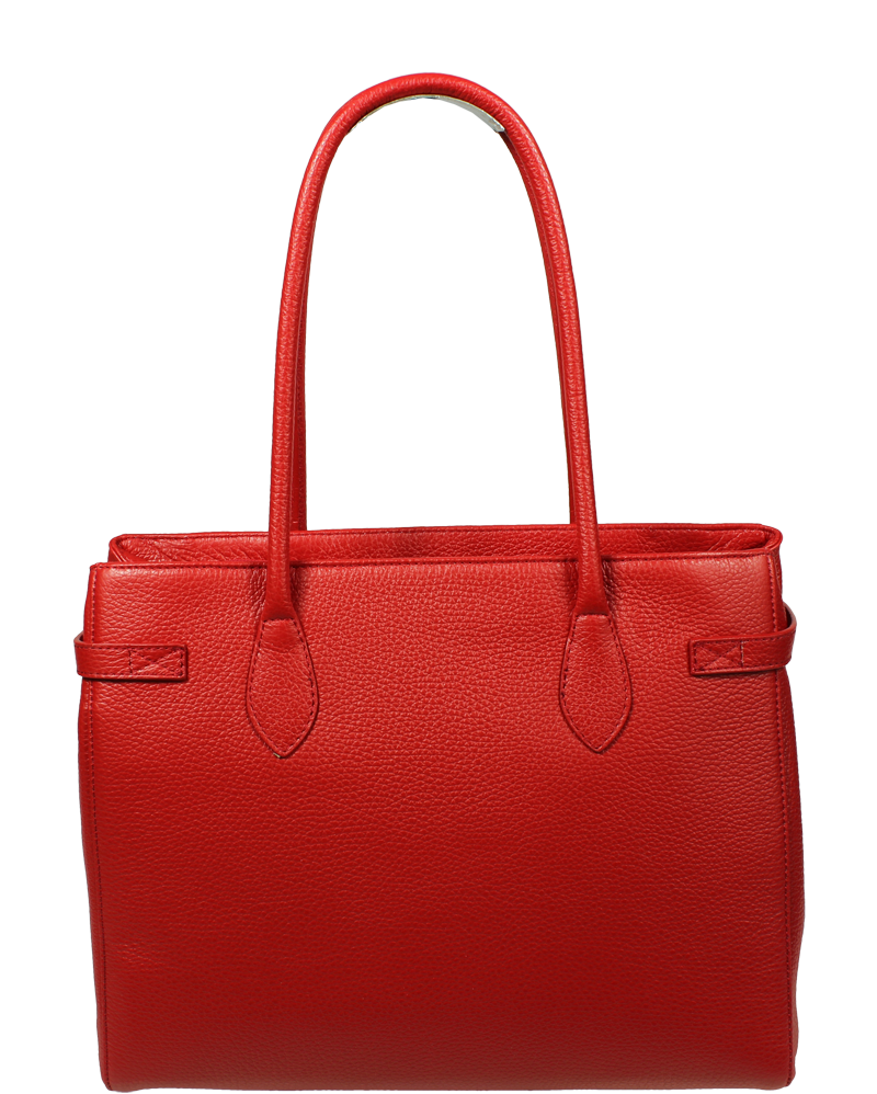 Velká kabelka nositelná přes rameno propracovaného designu s dekoračním zámečkem. Tato červená kožená kabelka je uzavíratelná na zip. Vyrobena z pravé poctivé kůže. Uvnitř disponuje kapsou na zip a 2 malými kapsami vhodnými např. pro Váš mobil a peněženku. Hloubka jejího dna činí 10,5 cm.