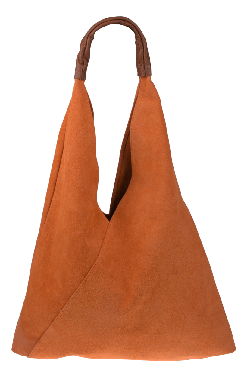 Velmi krásná kabelka trojúhelníkového tvaru z broušené kůže, patří k našim nejoblíbenějším kabelkám. Kabelka má jednoduchý design bez zbytečných ozdob, je elegantní a dostatečně prostorná. Kabelka uvnitř disponuje dvěma pásky, které můžete zavázat a chránit tak Vaše cennosti.