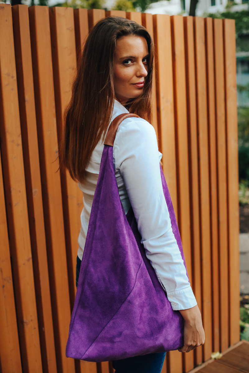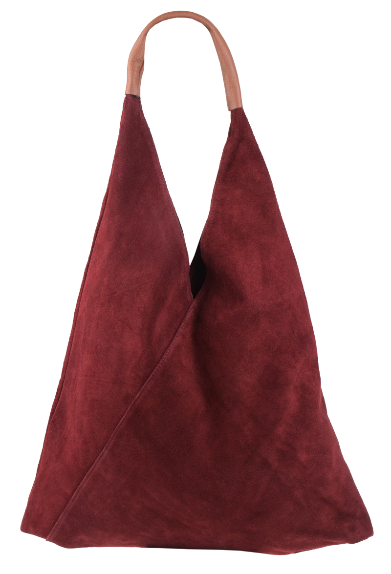 Velmi krásná kabelka trojúhelníkového tvaru z broušené kůže, patří k našim nejoblíbenějším kabelkám. Kabelka má jednoduchý design bez zbytečných ozdob, je elegantní a dostatečně prostorná. Kabelka uvnitř disponuje dvěma pásky, které můžete zavázat a chránit tak Vaše cennosti.