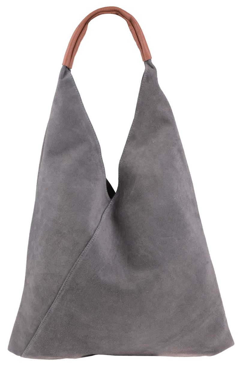Velmi krásná kabelka trojúhelníkového tvaru z broušené kůže, patří k našim nejoblíbenějším kabelkám. Kabelka má jednoduchý design bez zbytečných ozdob, je elegantní a dostatečně prostorná. Kabelka uvnitř disponuje dvěma pásky, které můžete zavázat a chránit tak Vaše cennosti.