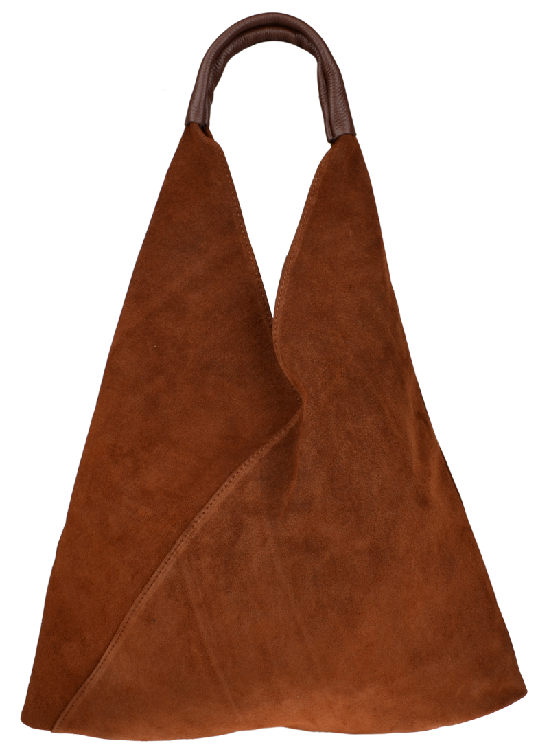 Velmi krásná kabelka trojúhelníkového tvaru z broušené kůže, patří k našim nejoblíbenějším kabelkám. Kabelka má jednoduchý design bez zbytečných ozdob, je elegantní a dostatečně prostorná. Kabelka uvnitř disponuje dvěma pásky, které můžete zavázat a chránit tak Vaše cennosti.