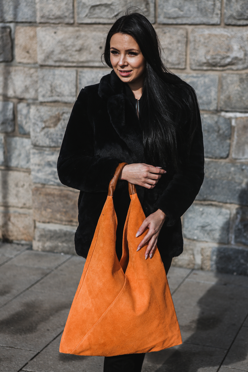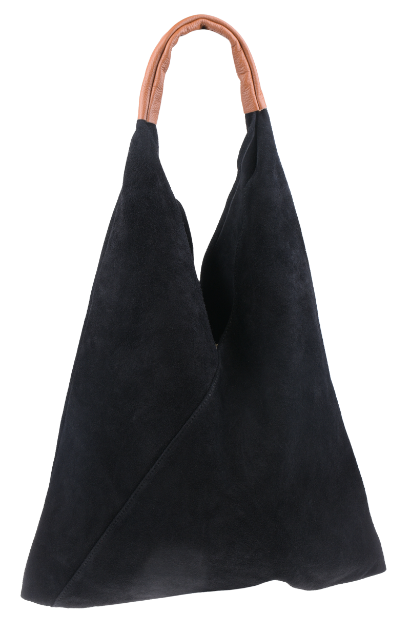 Velmi krásná kabelka trojúhelníkového tvaru z broušené kůže, patří k našim nejoblíbenějším kabelkám. Kabelka má jednoduchý design bez zbytečných ozdob, je elegantní a dostatečně prostorná. Kabelka uvnitř disponuje dvěma pásky, které můžete zavázat a chránit tak Vaše cennosti.