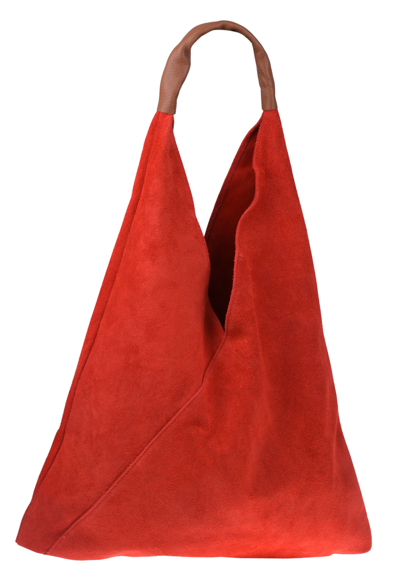 Velmi krásná kabelka trojúhelníkového tvaru z broušené kůže, patří k našim nejoblíbenějším kabelkám. Kabelka má jednoduchý design bez zbytečných ozdob, je elegantní a dostatečně prostorná. Kabelka uvnitř disponuje dvěma pásky, které můžete zavázat a chránit tak Vaše cennosti.