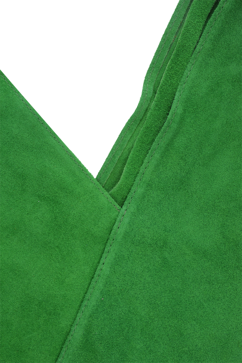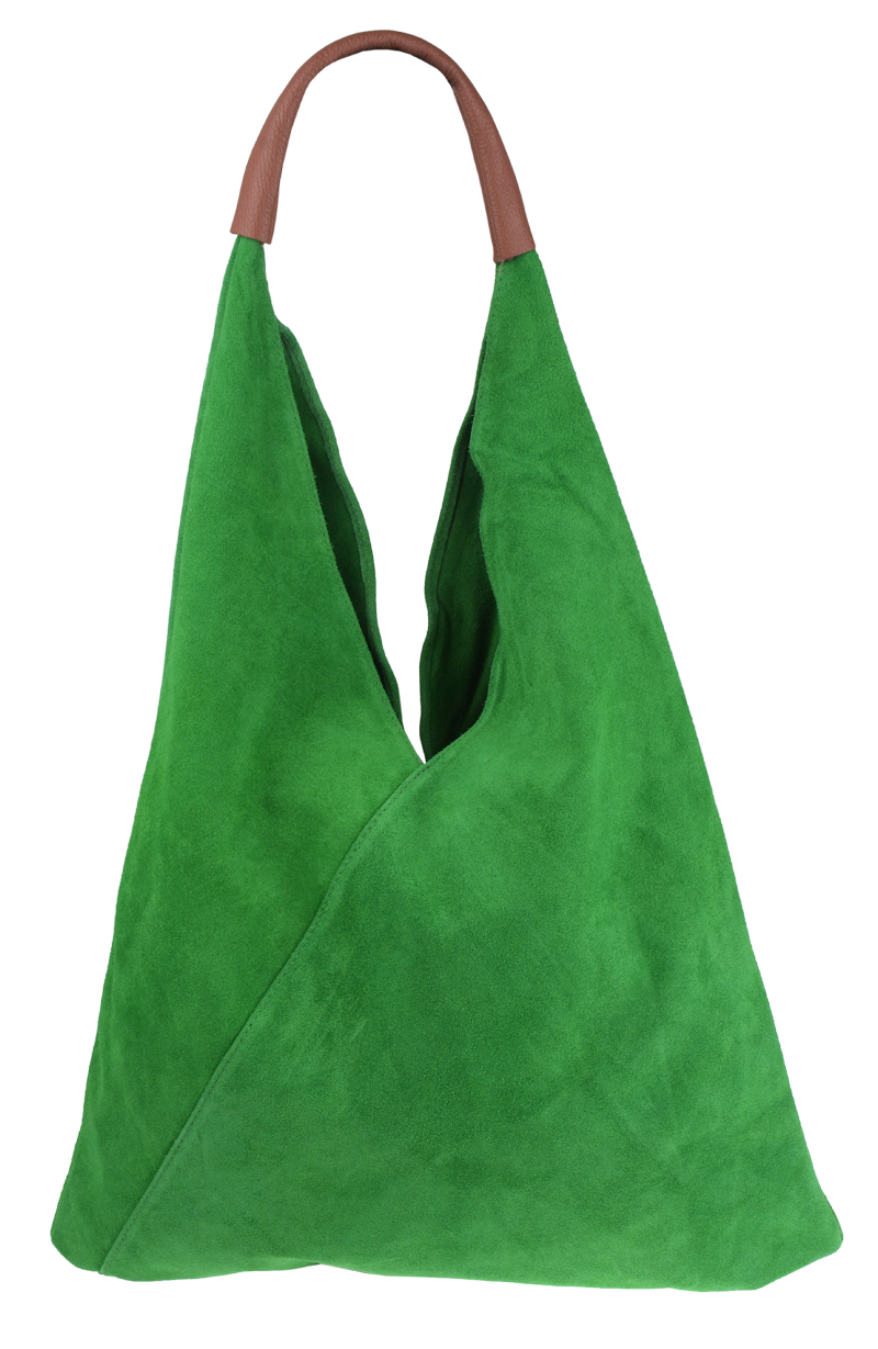 Velmi krásná kabelka trojúhelníkového tvaru z broušené kůže, patří k našim nejoblíbenějším kabelkám. Kabelka má jednoduchý design bez zbytečných ozdob, je elegantní a dostatečně prostorná. Kabelka uvnitř disponuje dvěma pásky, které můžete zavázat a chránit tak Vaše cennosti.
