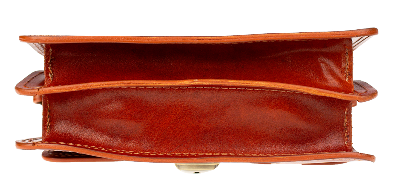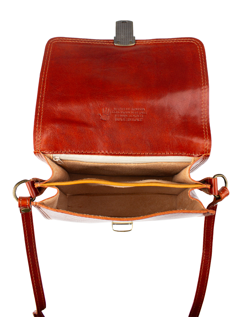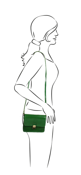 Malá šikovná kabelka se zajímavým tvarem. Kabelka je vyrobená z pravé kůže, která velice dobře drží svůj tvar. Je vhodná na nošení přes rameno nebo cross-body (křížem).