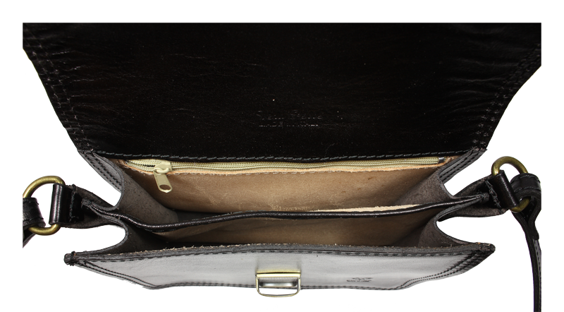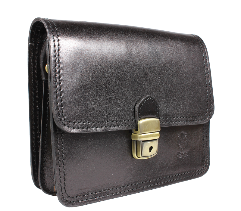 Malá šikovná kabelka se zajímavým tvarem. Kabelka je vyrobená z pravé kůže, která velice dobře drží svůj tvar. Je vhodná na nošení přes rameno nebo cross-body (křížem).