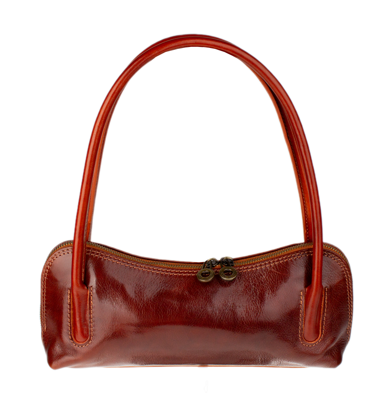 Malá, ale velmi oblíbená praktická hnědá kabelka vyrobena z pravé pevné kůže, která si velmi dobře drží svůj tvar. Je vhodná k nošení přes rameno. Uvnitř disponuje malou kapsičkou na zip. Kabelka je vhodná nejen pro každodenní nošení do práce či do města, ale i na významnější či slavnostní příležitosti.