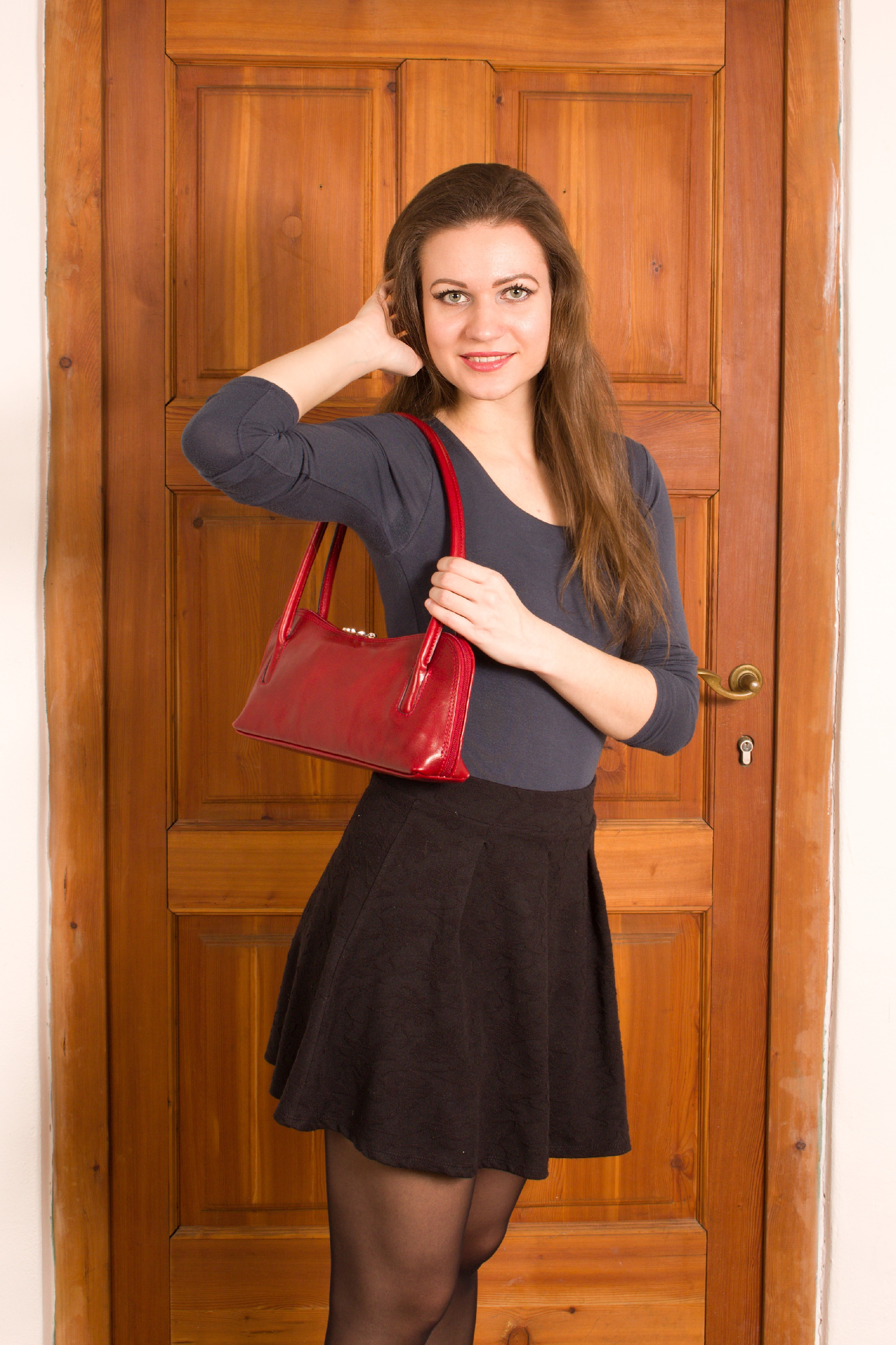 Malá, ale velmi oblíbená praktická kabelka vyrobena z pravé pevné kůže, která si velmi dobře drží svůj tvar. Je vhodná k nošení přes rameno. Uvnitř disponuje malou kapsičkou na zip. Kabelka je vhodná nejen pro každodenní nošení do práce či do města, ale i na významnější či slavnostní příležitosti.