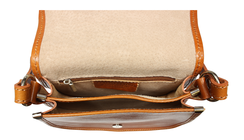 Malá šikovná kabelka se zajímavým tvarem. Kabelka je vyrobená z pravé kůže, která velice dobře drží svůj tvar. Je vhodná na nošení přes rameno nebo cross-body (křížem).