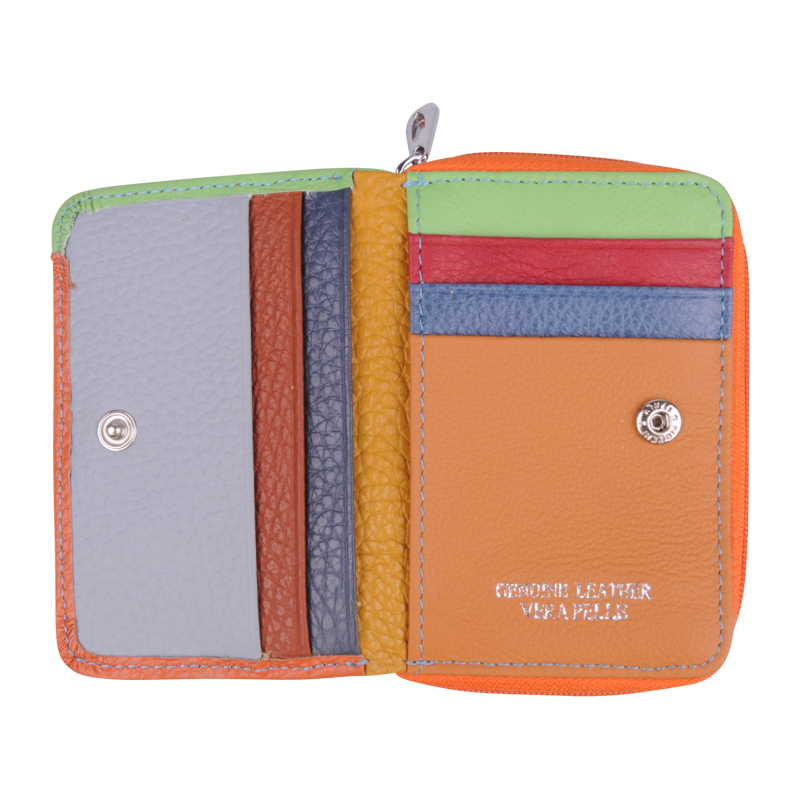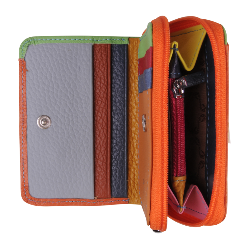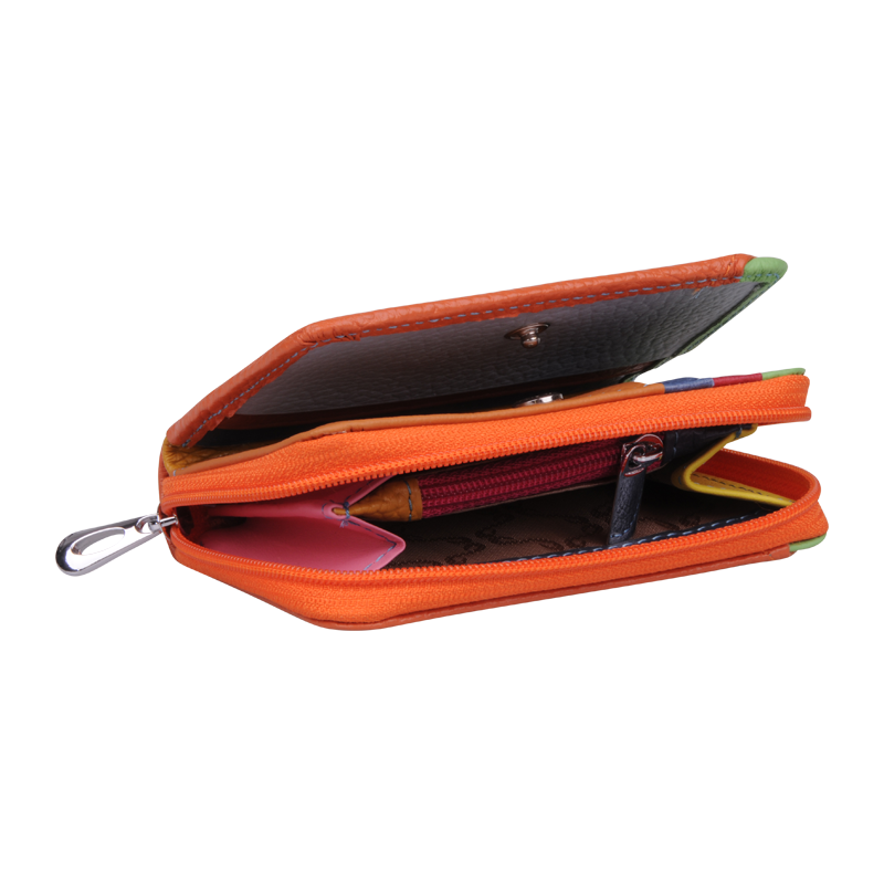 Poutavý vnitřní design: Zatímco vnější strana je elegantně jednobarevná, vnitřek překvapí barevnými přihrádkami (oranžová, žlutá, červená, zelená), které dodávají peněžence osobitost a usnadňují orientaci.